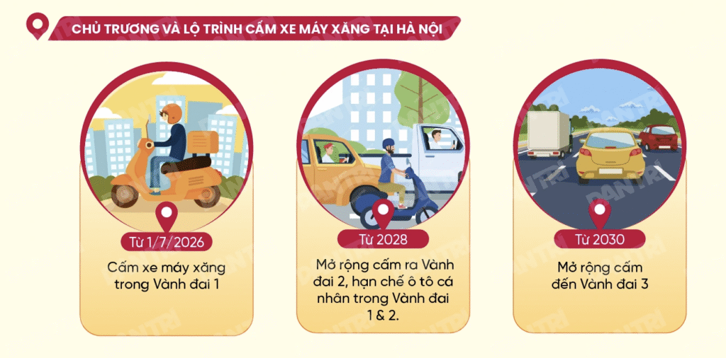 3. 自2030年起:禁行區域將進一步擴展至環狀三號(Vành đai 3)